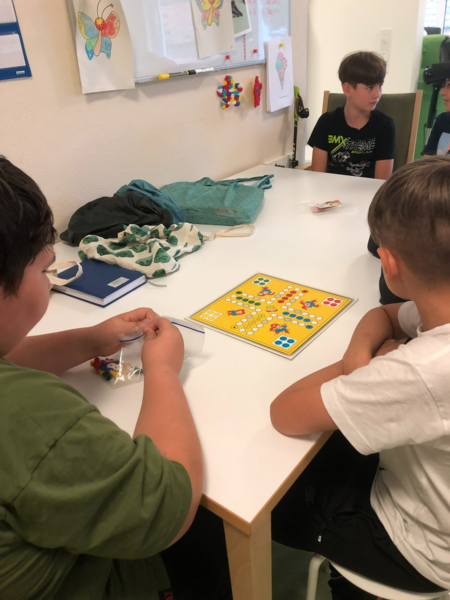 Es wurde dann Mensch-ärgere-dich-nicht gespielt, verschiedene Bücher vorgelesen, Montags-Maler gespielt, Landkarten angesehen und Fragen an die älteren Menschen gestellt. Außerdem hatten die Kinder noch das Schwarze-Peter-Spiel und ein Schach-Spiel vorbereitet.