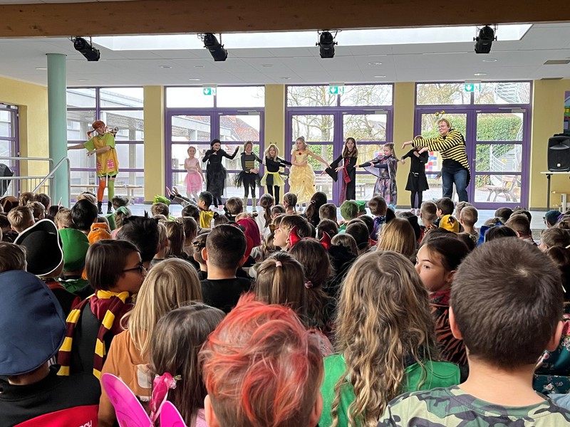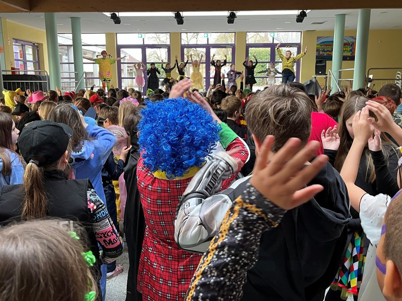Im Anschluss wurde getanzt und gesungen. Zu schwungvoller Musik bewegten sich Kinder und Lehrkräfte gemeinsam durch die Aula. Die gute Laune war überall spürbar – ein fröhliches Miteinander, das unsere Schulgemeinschaft besonders auszeichnet.
