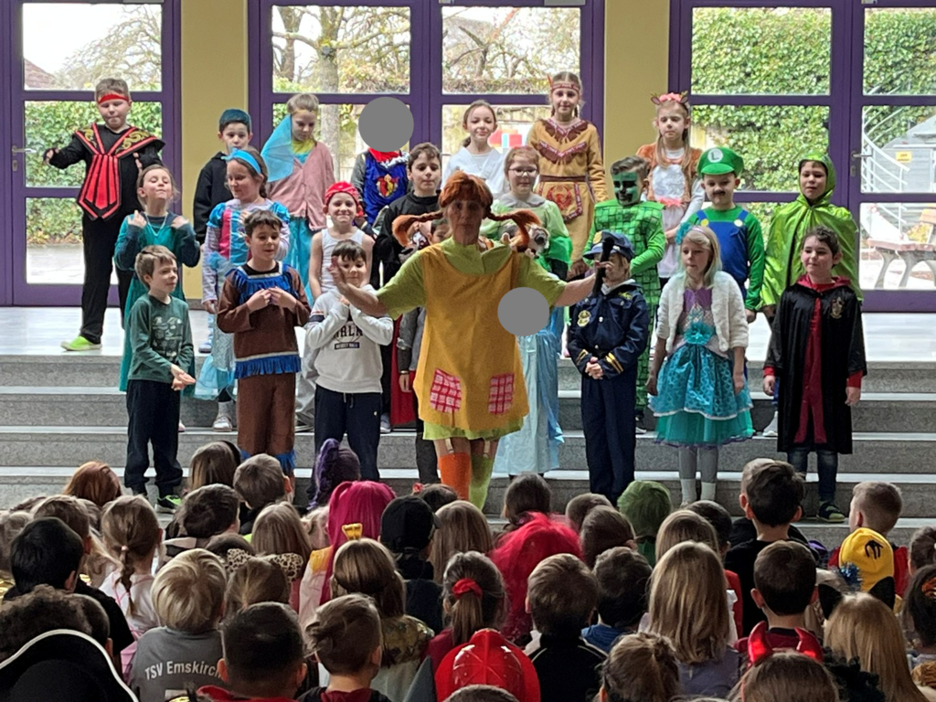 Am letzten Schultag vor den Faschingsferien fand an der Grundschule Emskirchen die 4. Schulversammlung des Schuljahres statt – und diese stand ganz im Zeichen des Faschings. Schon am Morgen verwandelte sich unsere Schule in ein buntes Meer aus Kostümen: Prinzessinnen, Superhelden, Tiere, Sportlerinnen und Sportler sowie viele fantasievolle Eigenkreationen sorgten für fröhliche Stimmung im ganzen Schulhaus.