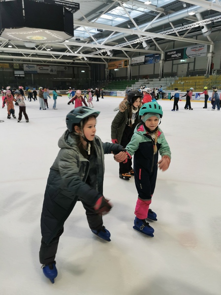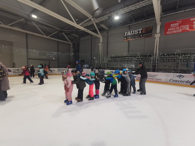 Ein herzliches Dankeschön gilt den zahlreichen Eltern, die diesen Ausflug begleitet haben. Sie halfen geduldig beim Anziehen der Schlittschuhe, reichten Helme und Handschuhe und sorgten dafür, dass alle gut vorbereitet aufs Eis gehen konnten. Diese tatkräftige Unterstützung war eine große Hilfe und trug maßgeblich zum Gelingen des Tages bei.